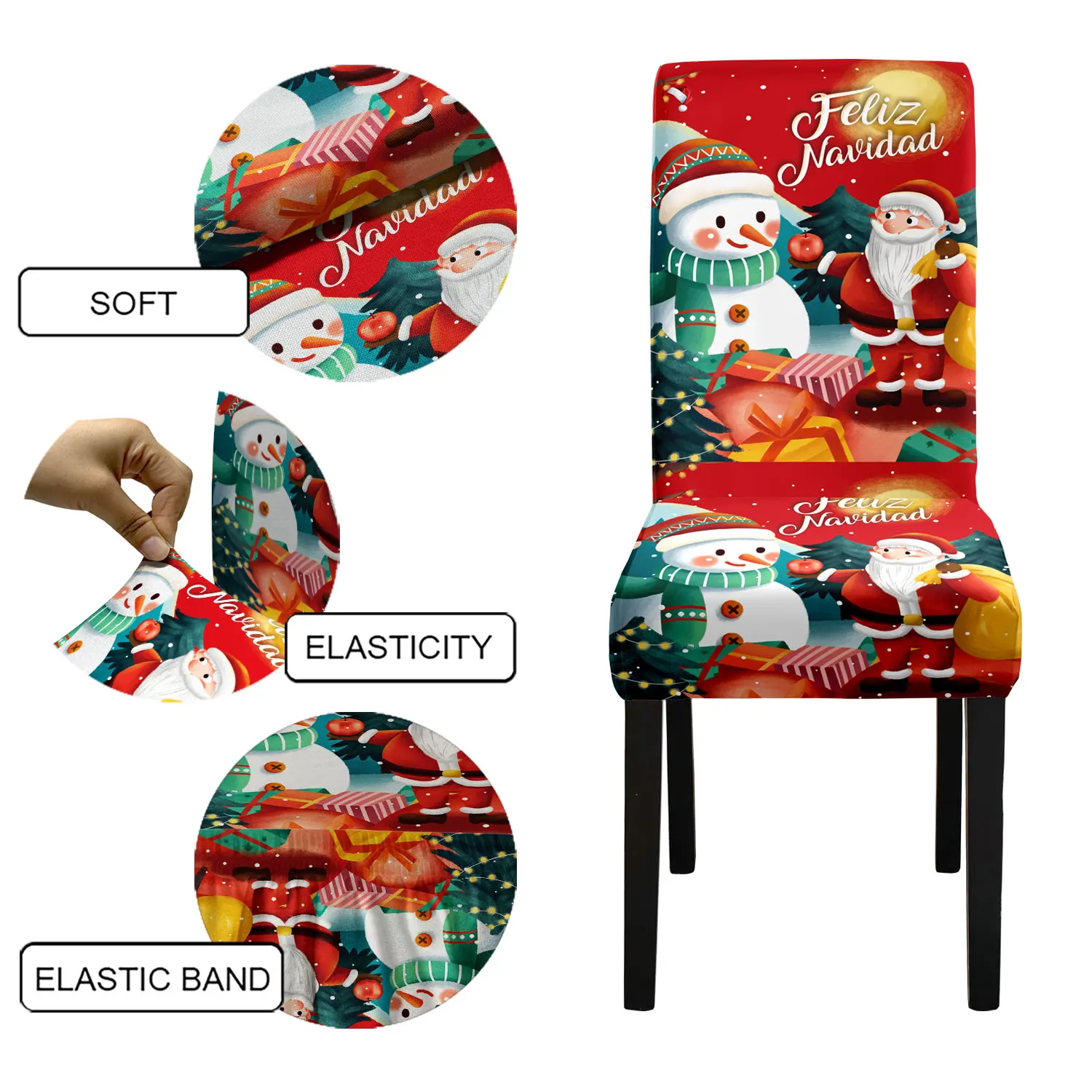Housse de chaise imprimée père noël et bonhomme de neige, décoration de va...