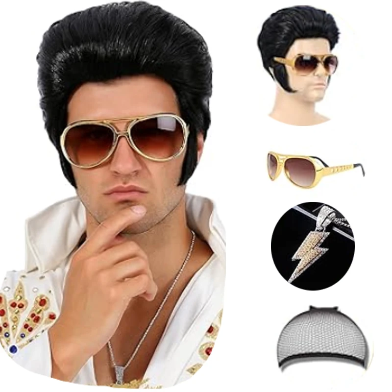 Ensemble de costumes à bascule des années 50, 4 pièces, perruque de style Elvis...