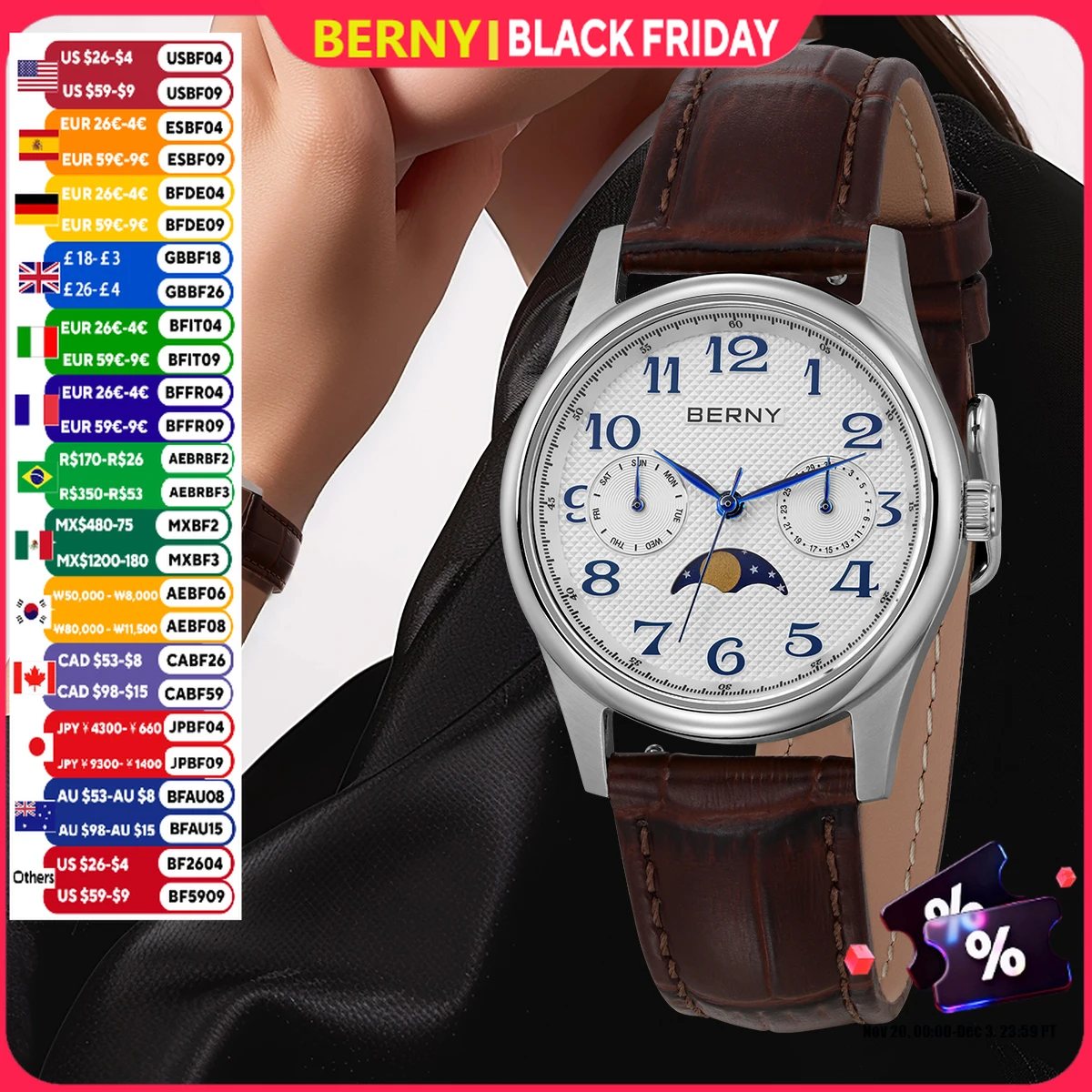 BERNY – montre de luxe pour femmes, à Quartz, Vintage, facile à lire, Phase de l...