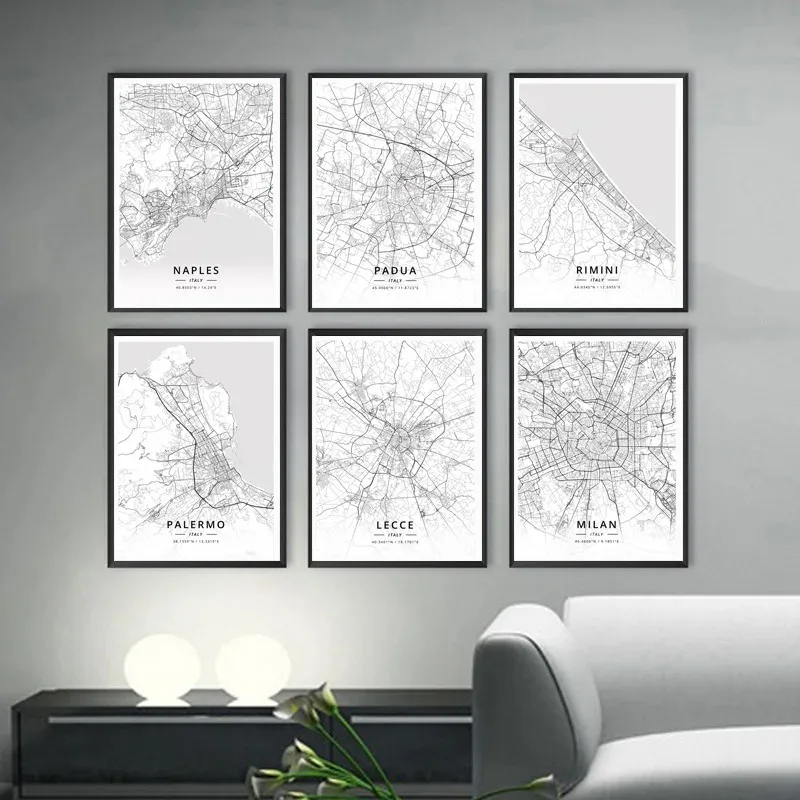 Lecce italie Milan Naples Padua Palermo Rimini carte Illustration toile peinture murale chambre d&ea...