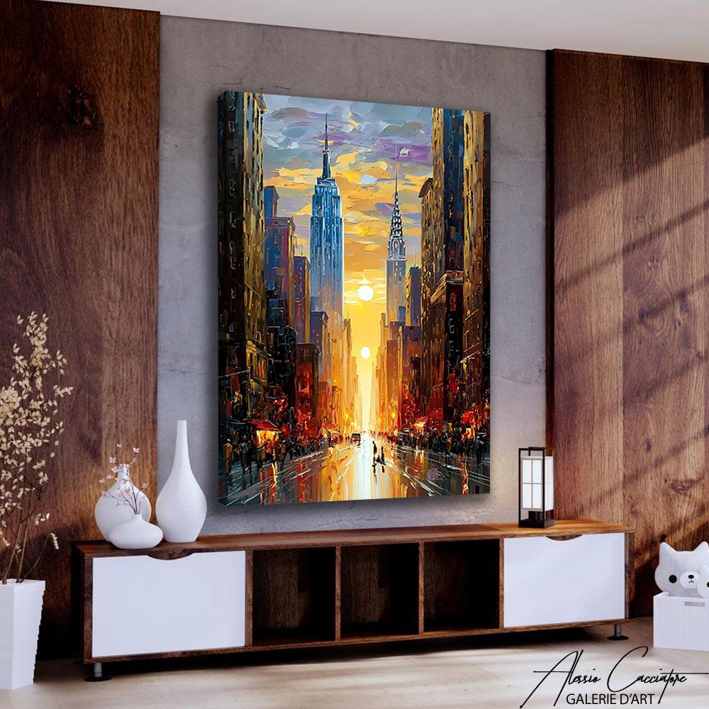 Abstract New York Print Framed, Sunset Art Abstract, New York Skyli...