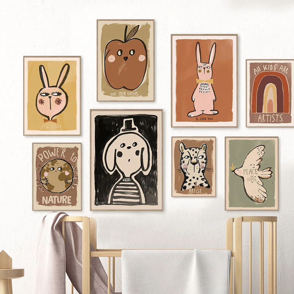 Affiches de dessin animé Boho lapin souris oie, toile d'art ...