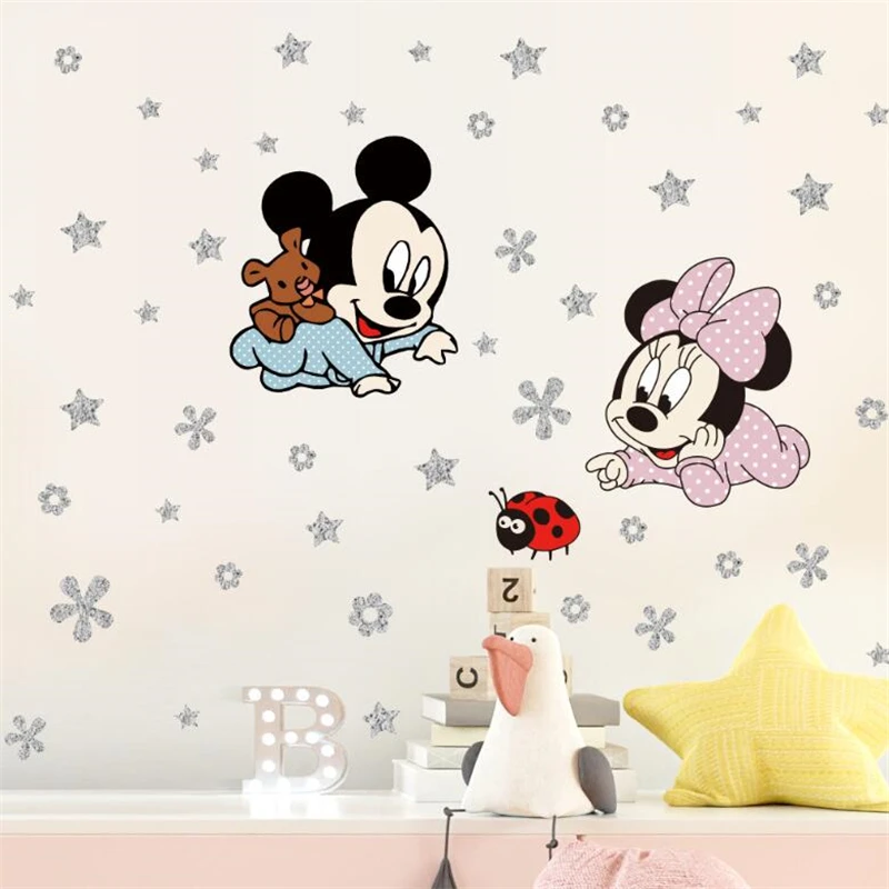 Autocollants de dessin animé Minnie Mouse pour enfants, papiers peints pour chambre d'enfant,...