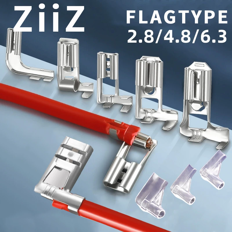 100 pièces or/argent drapeau électrique/Angle droit sertissage Terminal fil connecteur...
