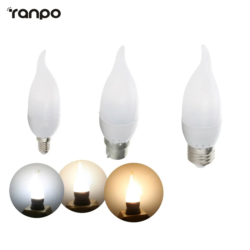 Ampoule de bougie LED 3W E27 E14 E12 B22 B15, lustre à flamme en plastique, lumière do...