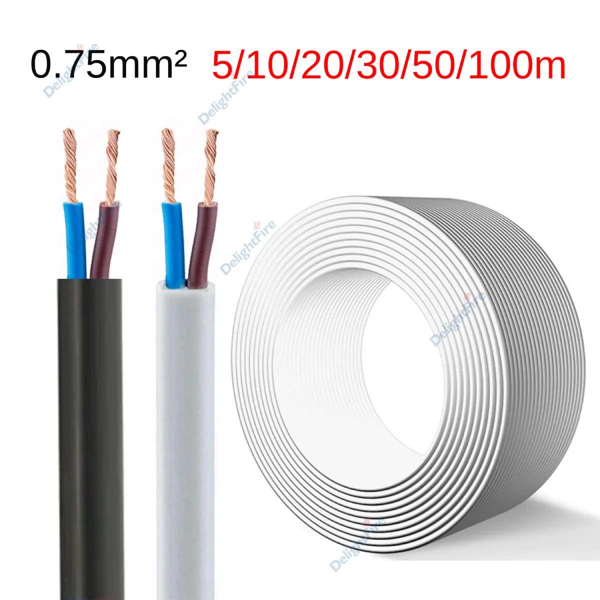 Fil électrique à 2 broches, 0.75 mm2 RVV, câble...