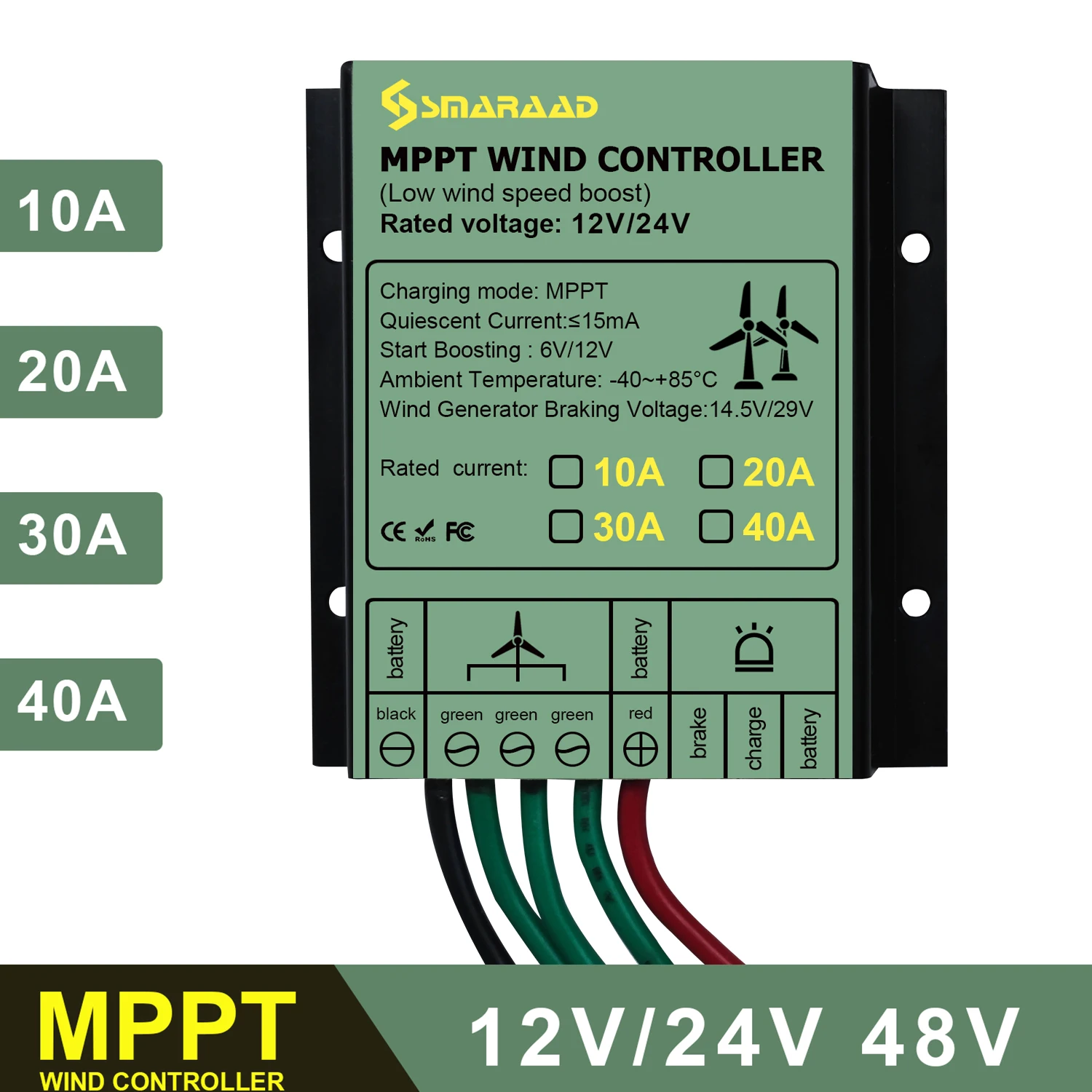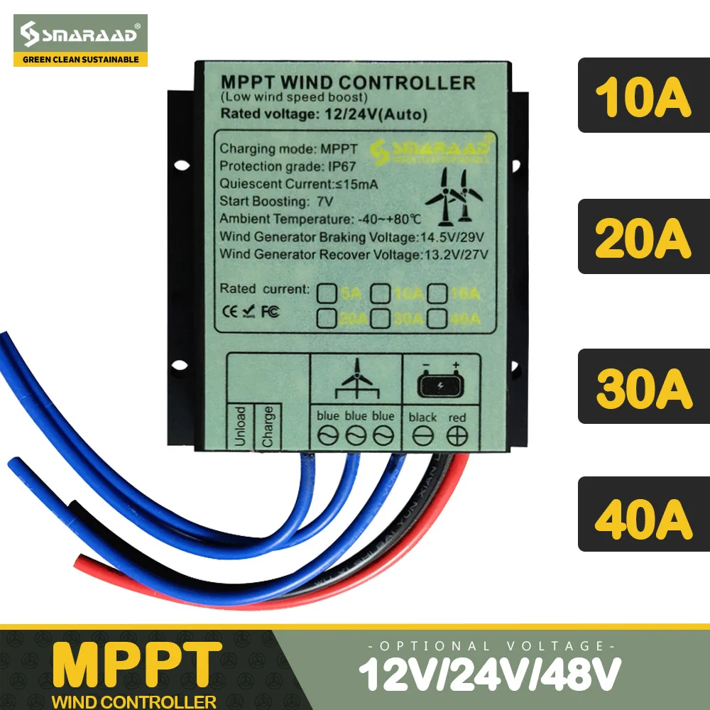 Contrôleur de Charge éolienne MPPT automatique 2000W 10A 20A 30A 40A 12V 24V Auto 48V p...