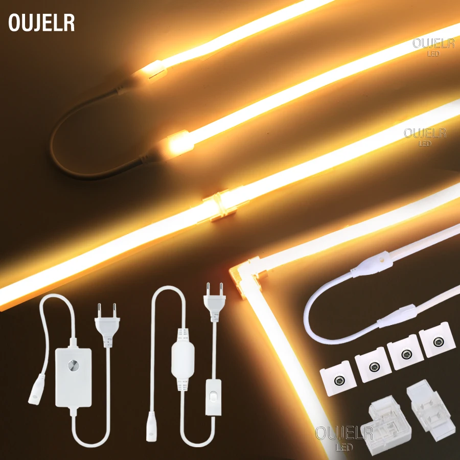 Connecteur de bande LED COB 220V, fiche EU 2 broches, sans zone sombre, connecteur en forme de L, cl...