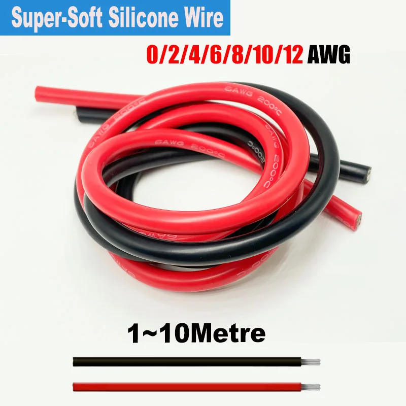 Fil en Silicone Super doux rouge noir 0 2 4 6 8AWG 10AWG, fil toronné en cuivre et éta...