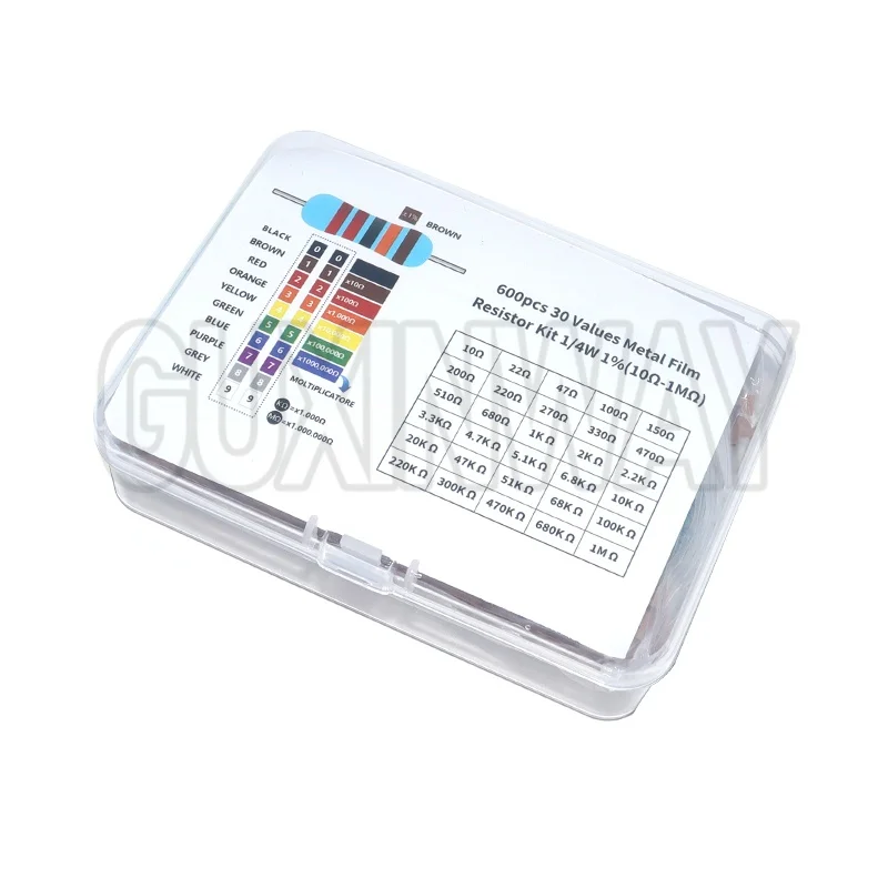 300/600 pièces 1/4W kit de résistance à Film métallique 1% 30 valeurs 0....