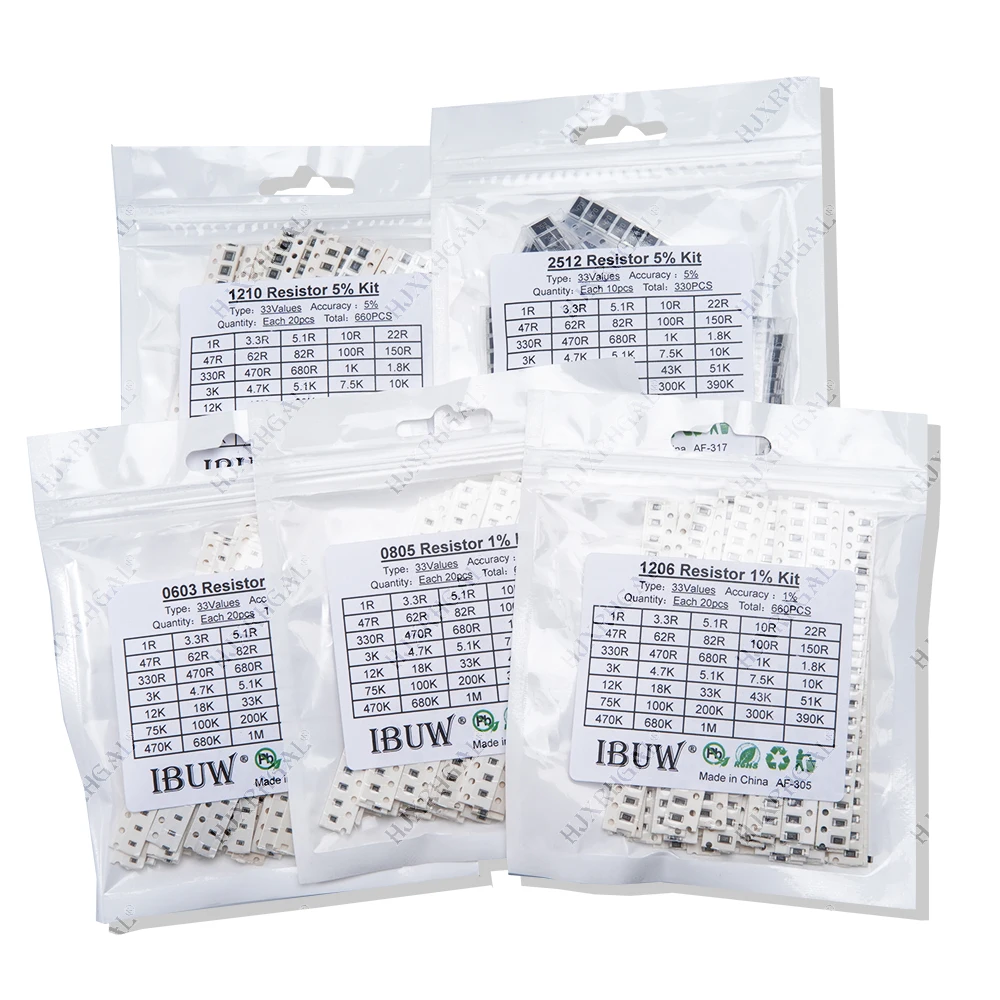 Kit de résistance SMD 0603, Kit assorti 1ohm-1M ohm 1% 33val...