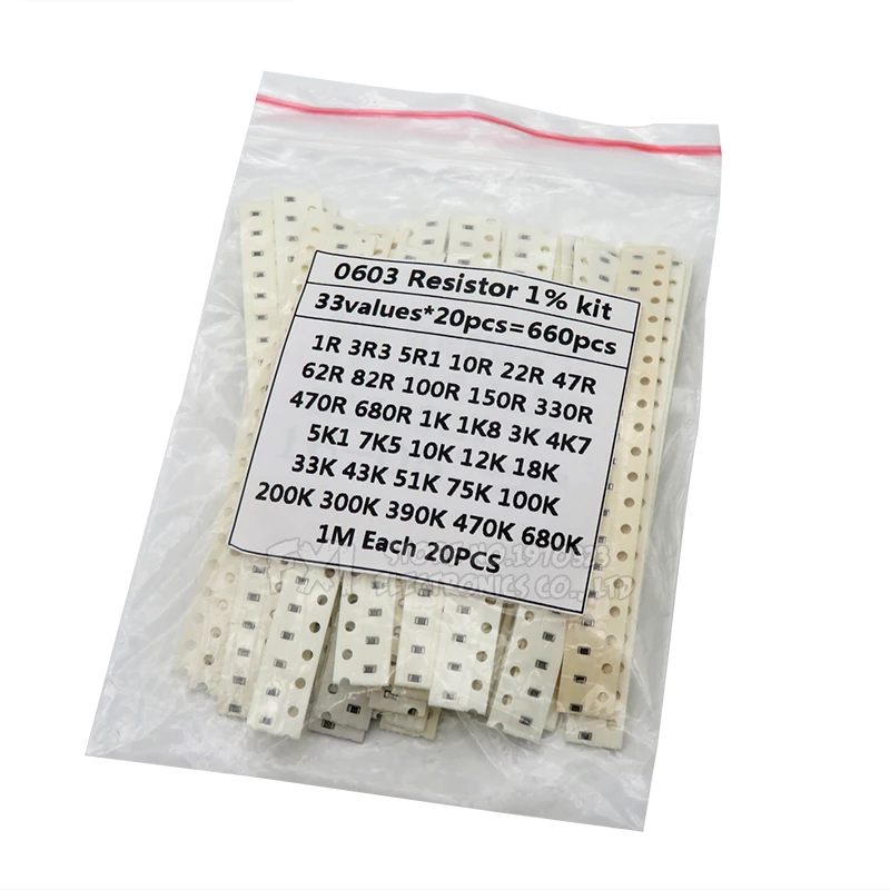 Kit de résistance SMD 0603, Kit assorti 1ohm-1M ohm 1% 33valuesX 20 pièces = 660 pi&eg...