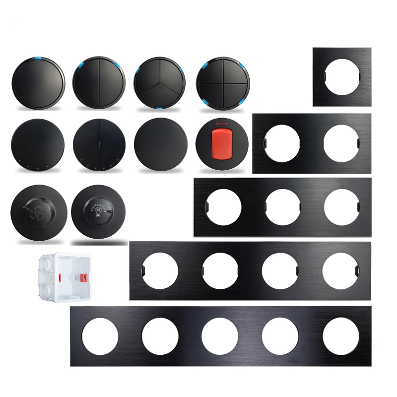 Interrupteur mural 1 2 3 4 gangs, plaque d'aluminium noire, bouton ...