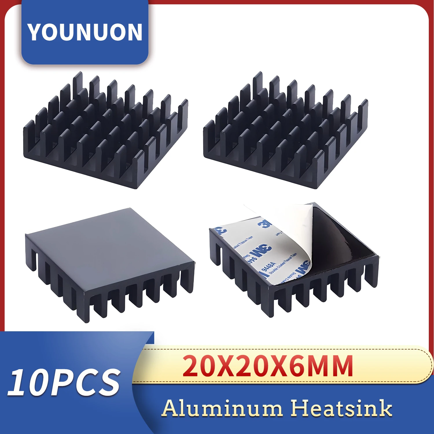10 pièces YOUNUON noir 20mm dissipateur thermique 20x20x6mm 6mm aluminium CPU carte CPU refro...