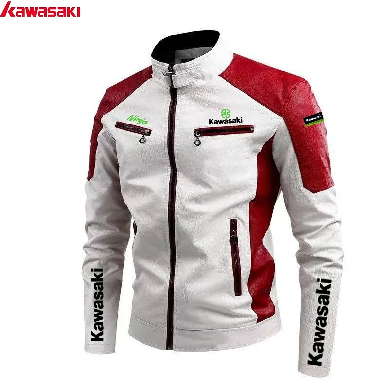 Blouson en cuir pour moto Kawasaki, série Ninja pour homme, blouson en cuir PU, couleur r&eac...