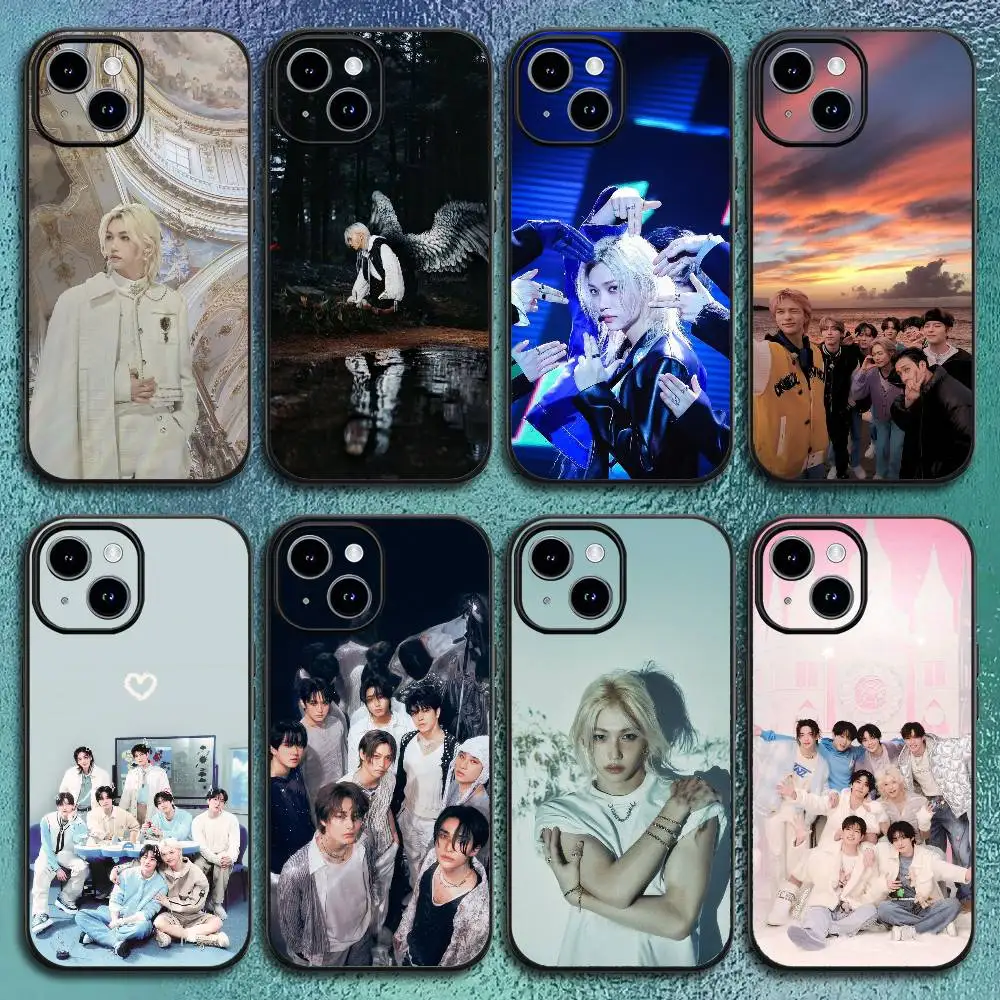 Groupe s-stray k-kids Kpop coque de téléphone noire pour IPhone 17 12 13 14 15 16Pro M...