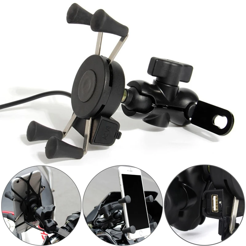Support de téléphone portable avec chargeur USB pour moto, support de rétrovise...