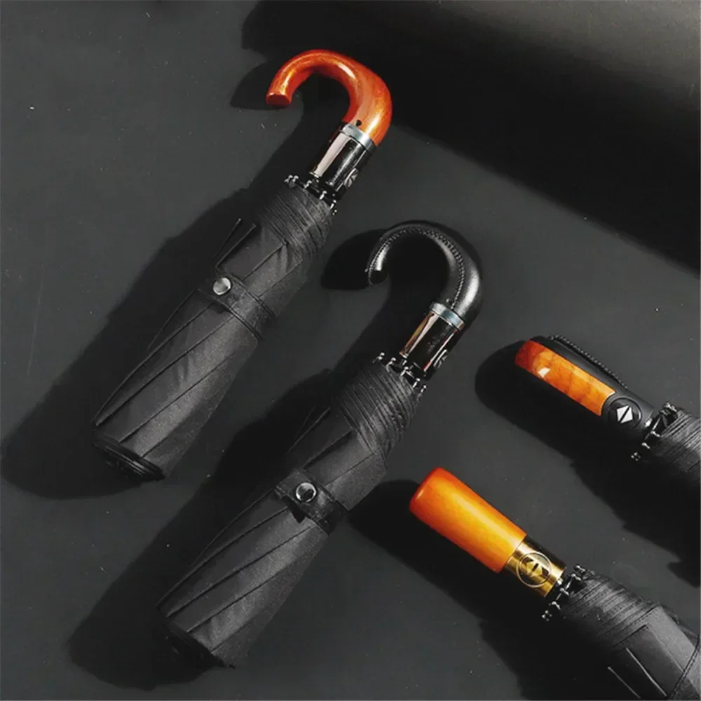 Parapluie automatique de style britannique avec manche en bois, grands parapluies coupe-vent pour ho...