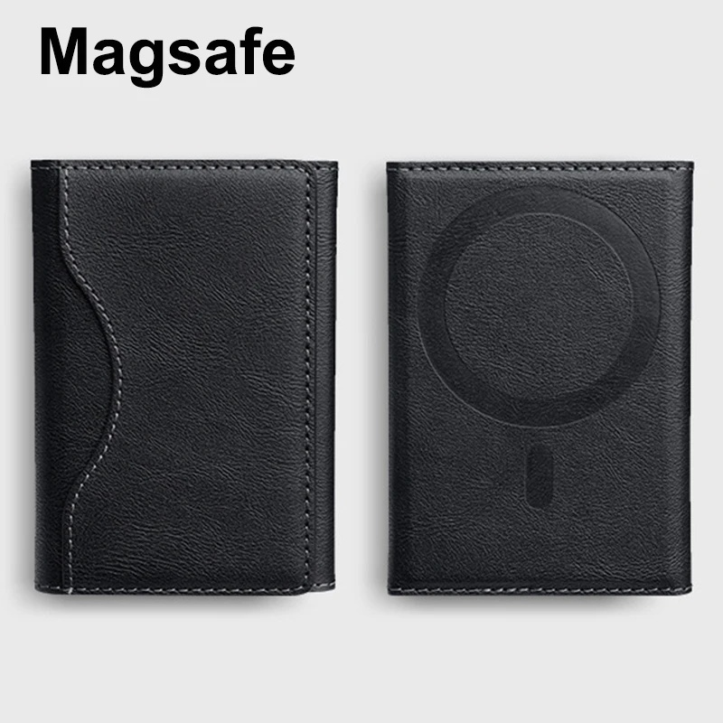 Magsafe porte-carte en cuir PU à trois volets porte-carte magnétique sac de carte port...