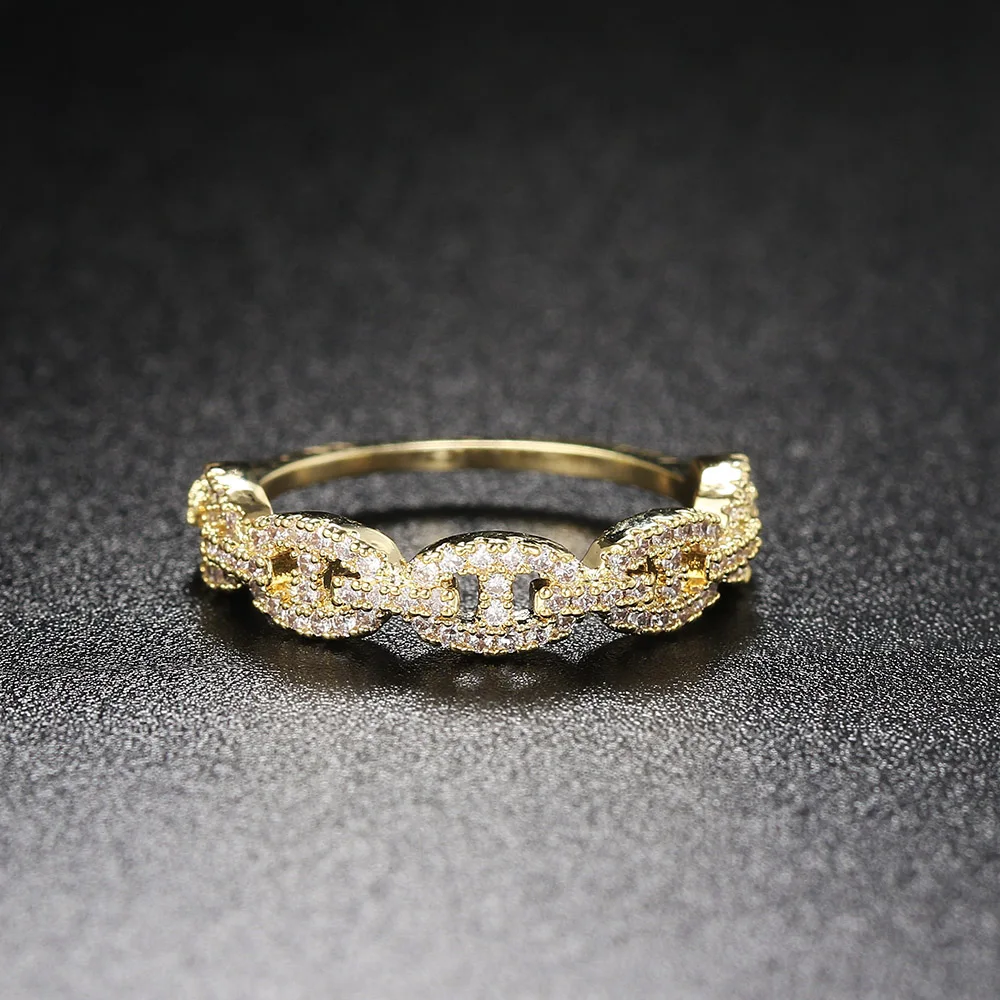 Bague à maillons Hip Hop pour femme, document en or, micro-incrusté, matiques empilabl...