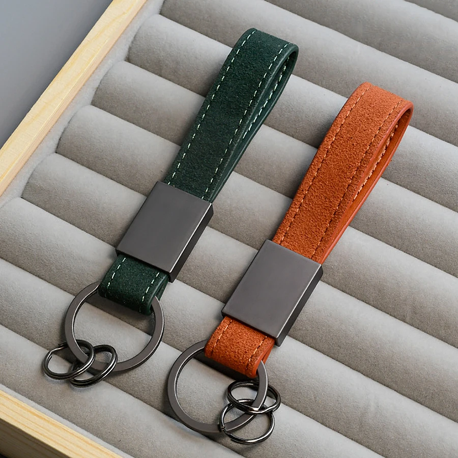 Porte-clés de luxe en cuir de vache pour hommes, porte-clés de voiture, breloque de sa...