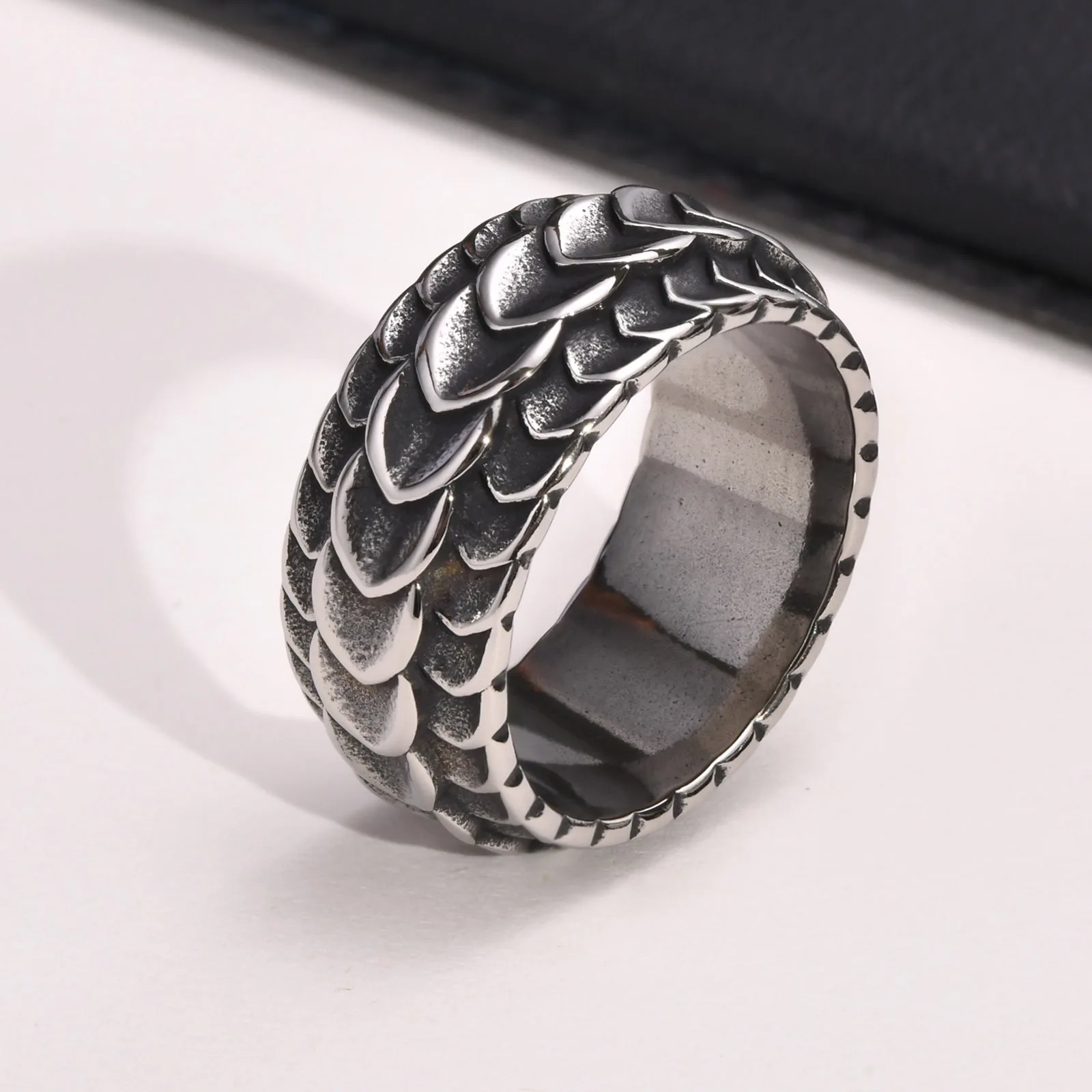 Bague anti-stress Dragon Scale pour hommes, en acier inoxydable, mo...