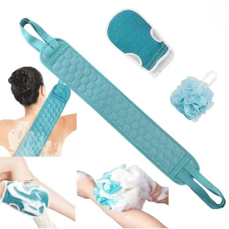 Ensemble exfoliant de bain, serviette de bain, gants, fleur de bain...