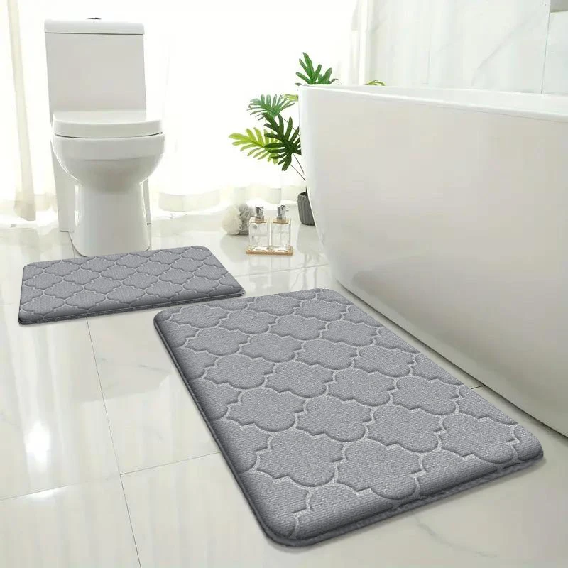 2 pièces de tapis de sol absorbants en flanelle gaufrée pour salle de bain, ensemble d...