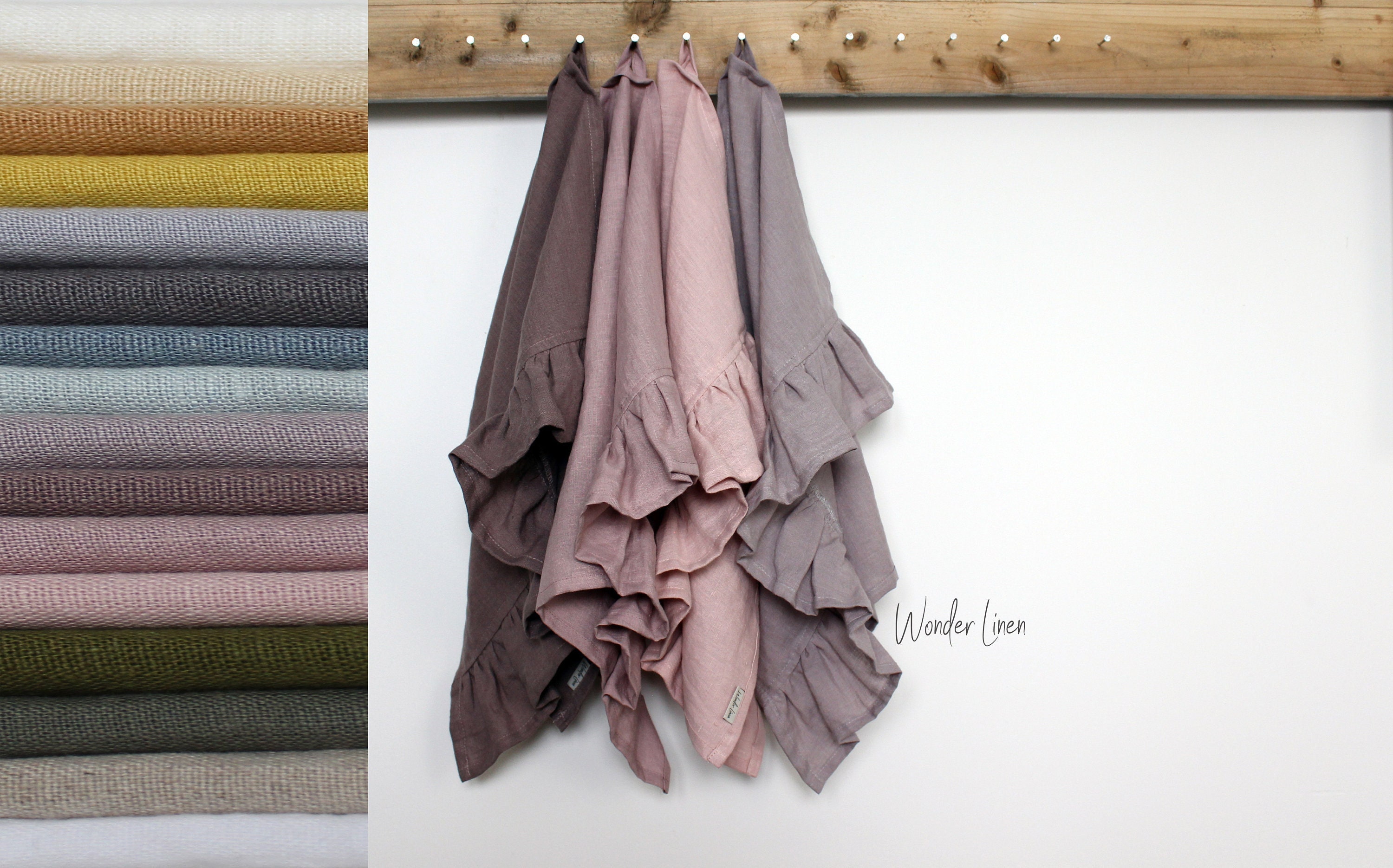 Ce torchon en lin avec de délicats volants ajoute une touche douce et élégante ...
