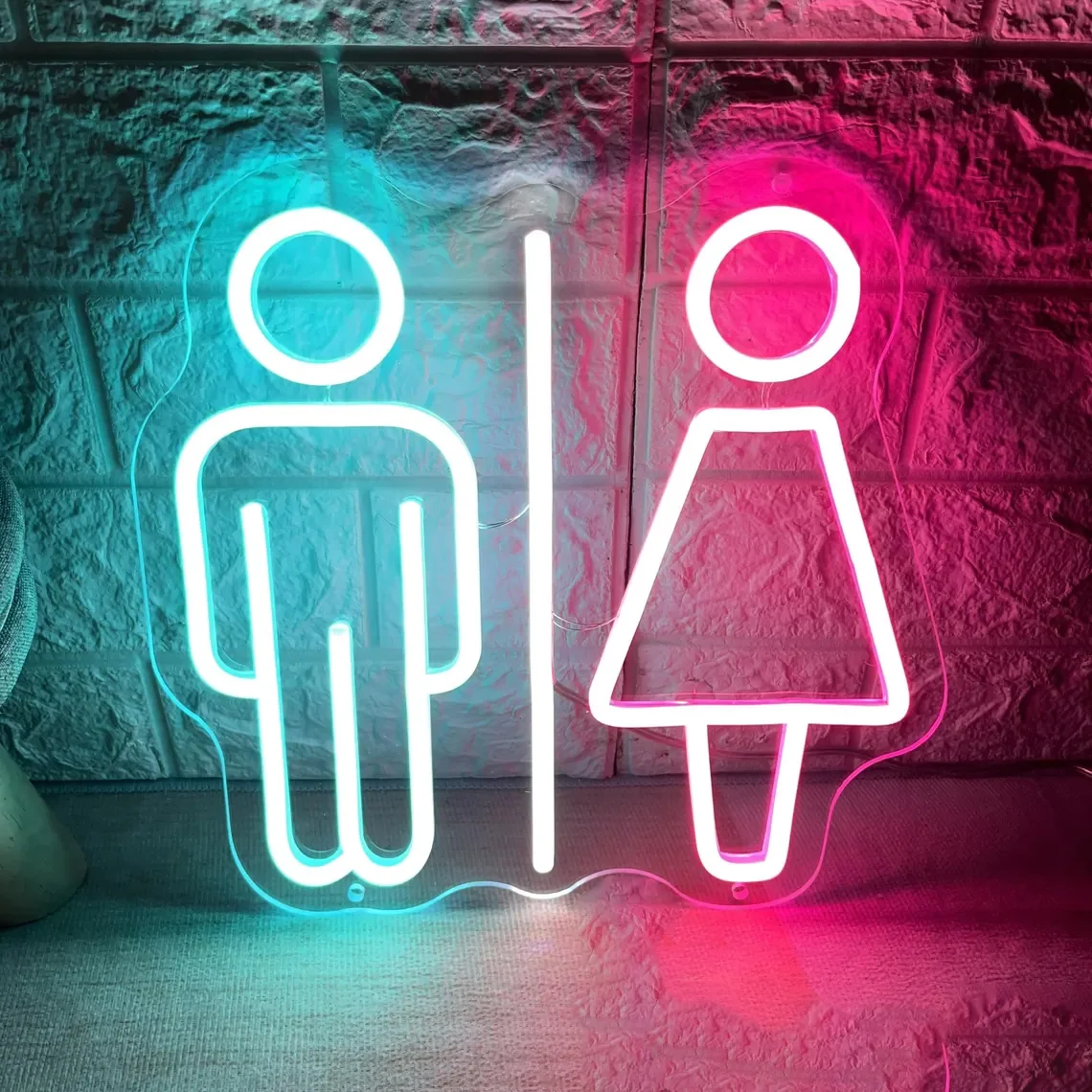 Homme et femmes toilette enseigne au néon WC toilettes symbole salle de bain néon caf&...