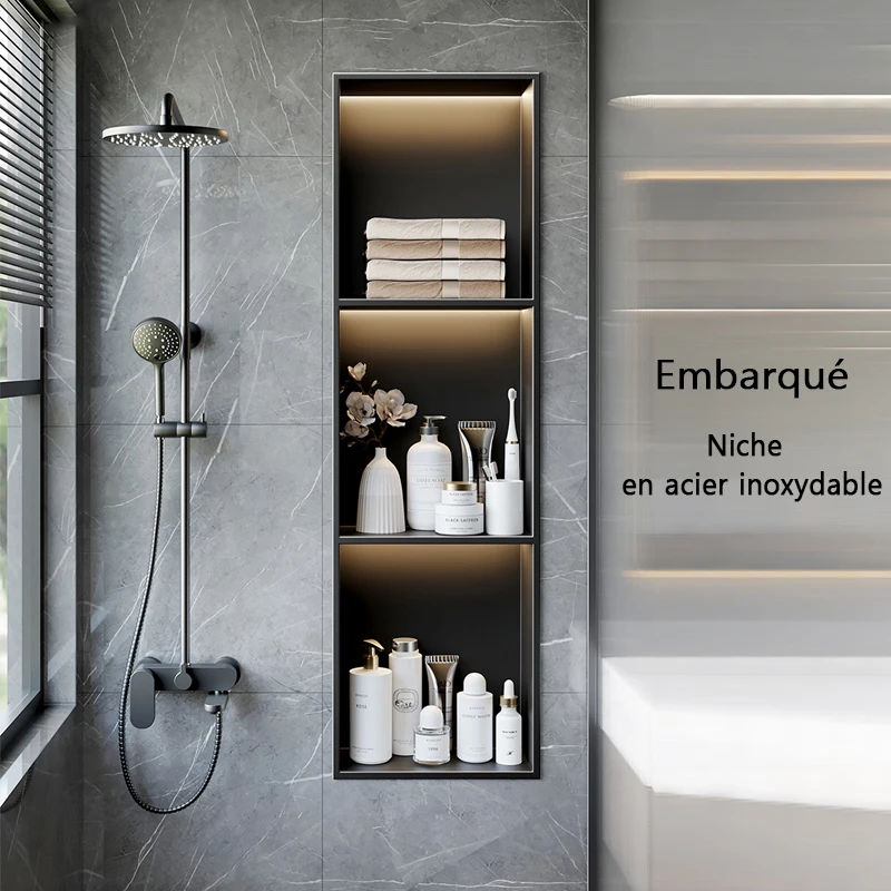 Niches de Luxe en Acier Inoxydable avec Lampe, Rangement à C...