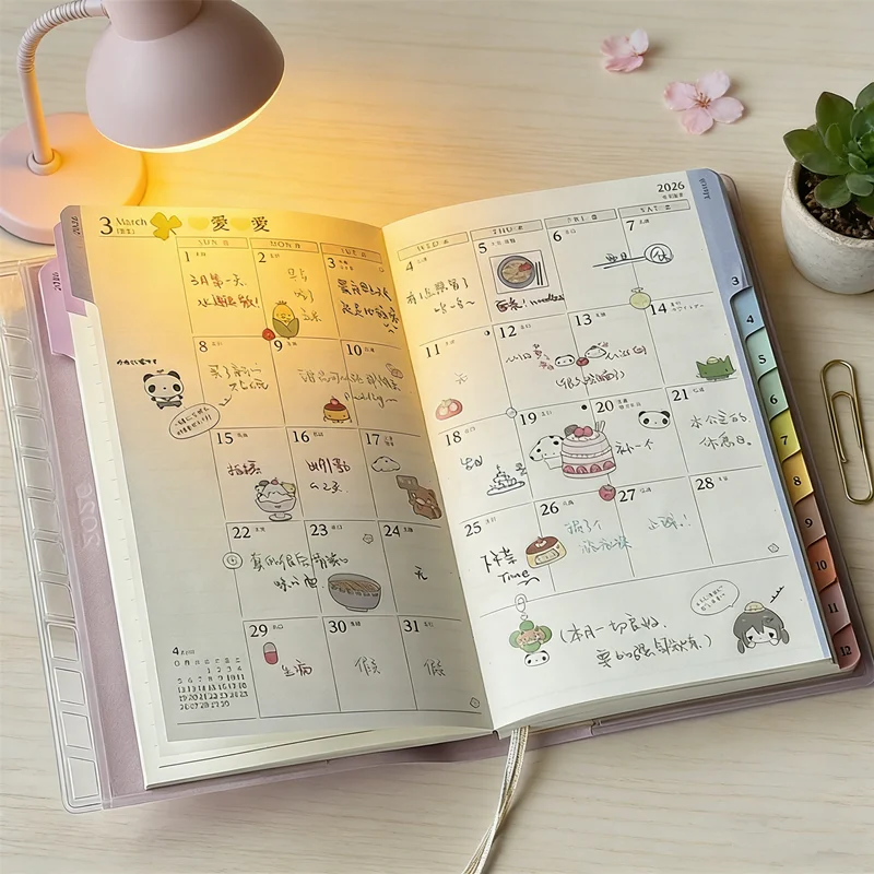 Agenda coréen 2026, carnet d'organisation pour étudiants, plans mensuels et hebdomadai...