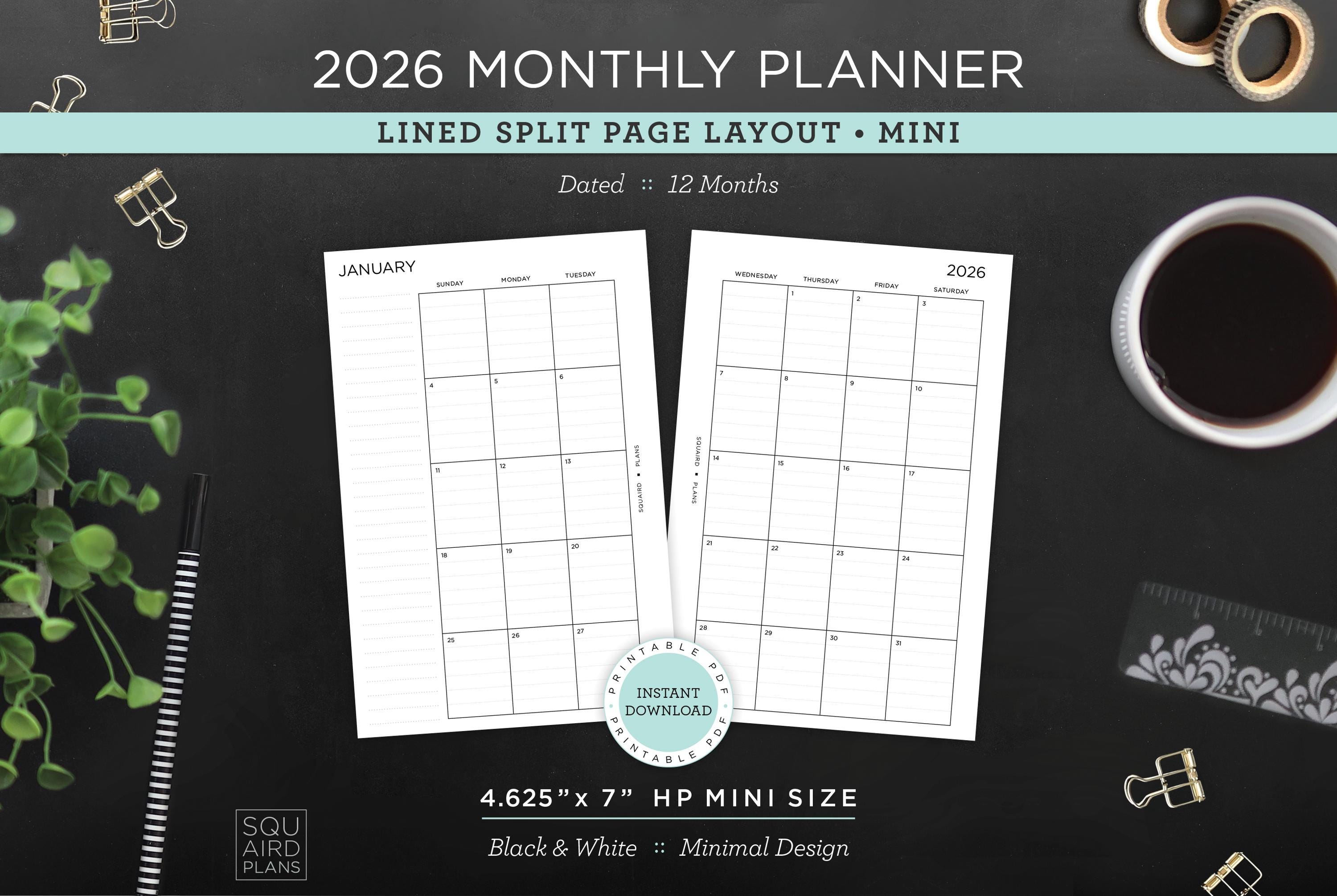 DISPOSITION LIGNEE DU MOIS * Agenda mensuel 2026 imprimable * Mini agenda Happy 4,625 po. x 7 po. De...