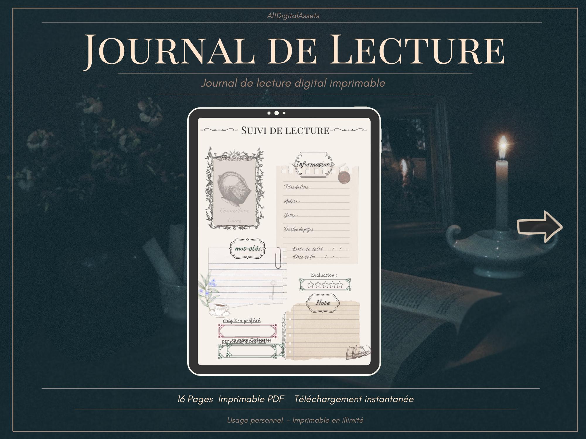 Journal de lecture digital, PDF à utiliser sur tablette ou &...