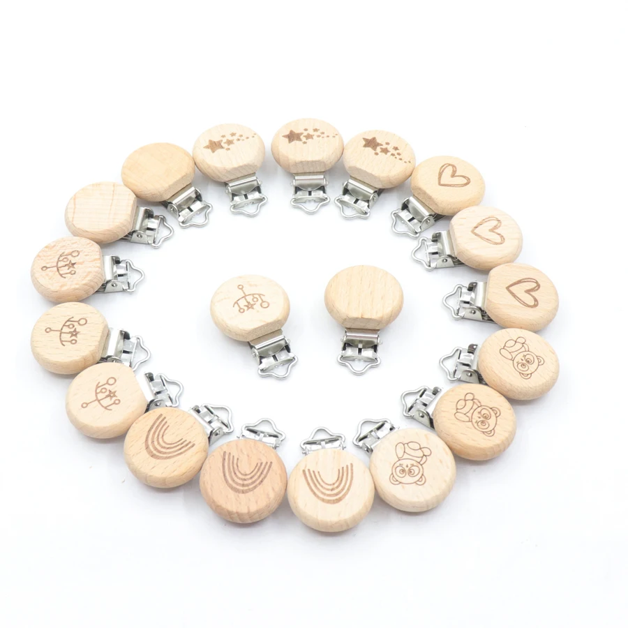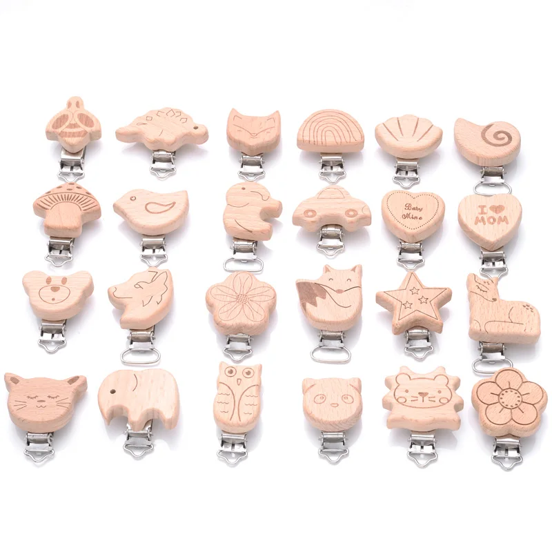 Clips de sucette en bois de hêtre pour bébé, 5 ...