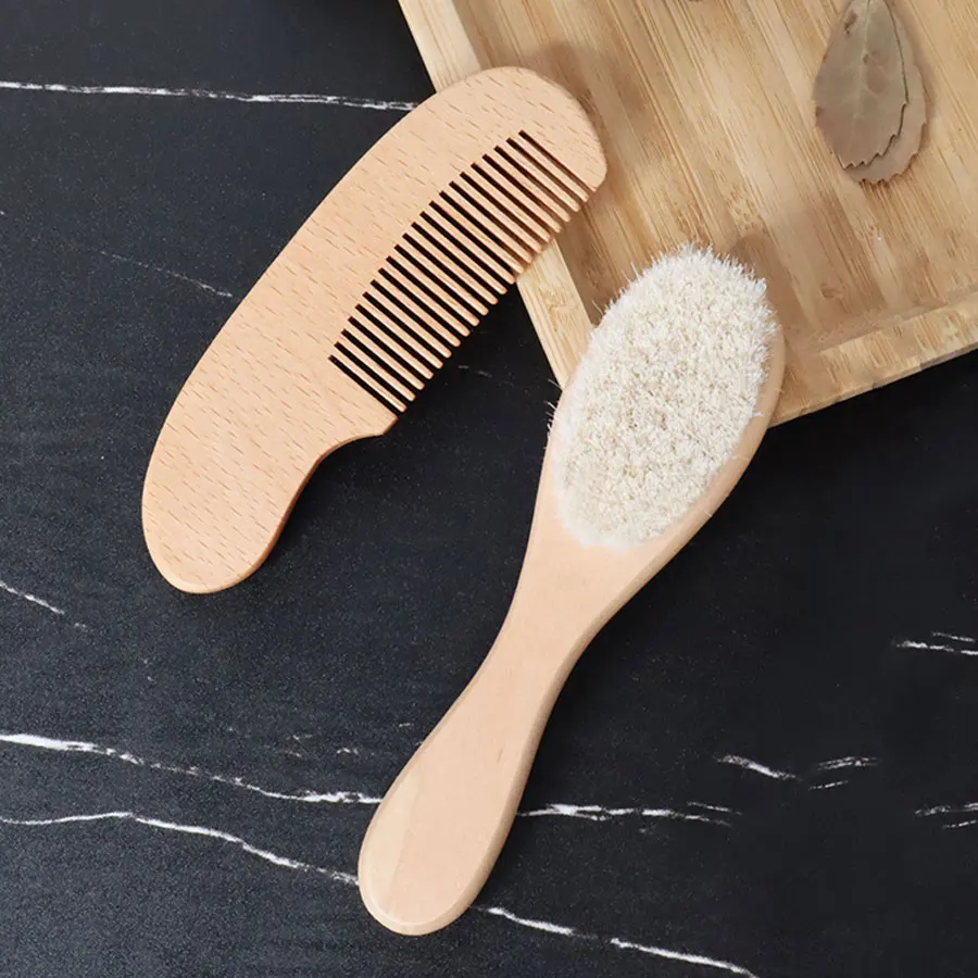 Ensemble de brosse et de peigne en bois et laine naturelle pour bébé, 1/2 pièce...