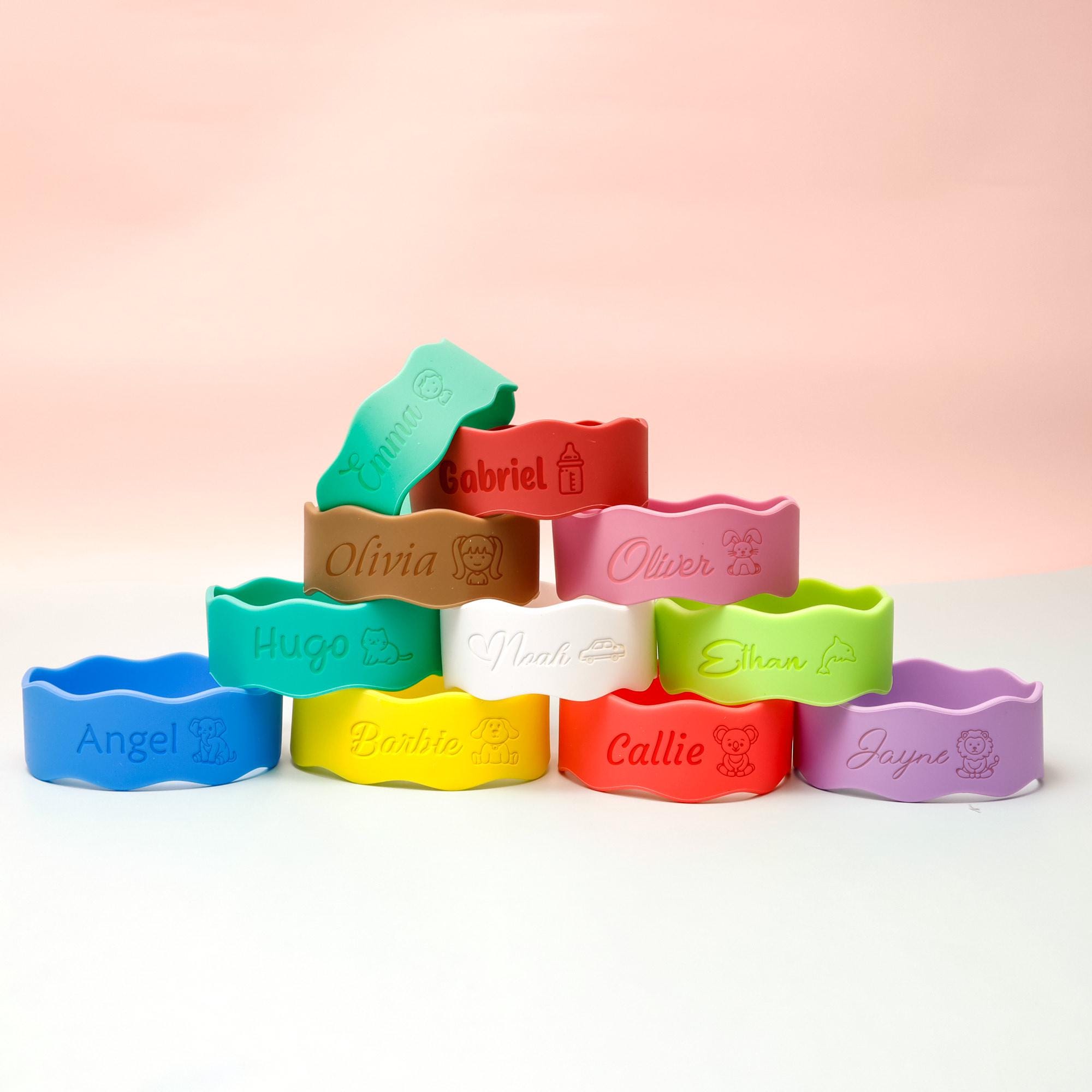 Protège-biberons en silicone personnalisés, Bandes de...