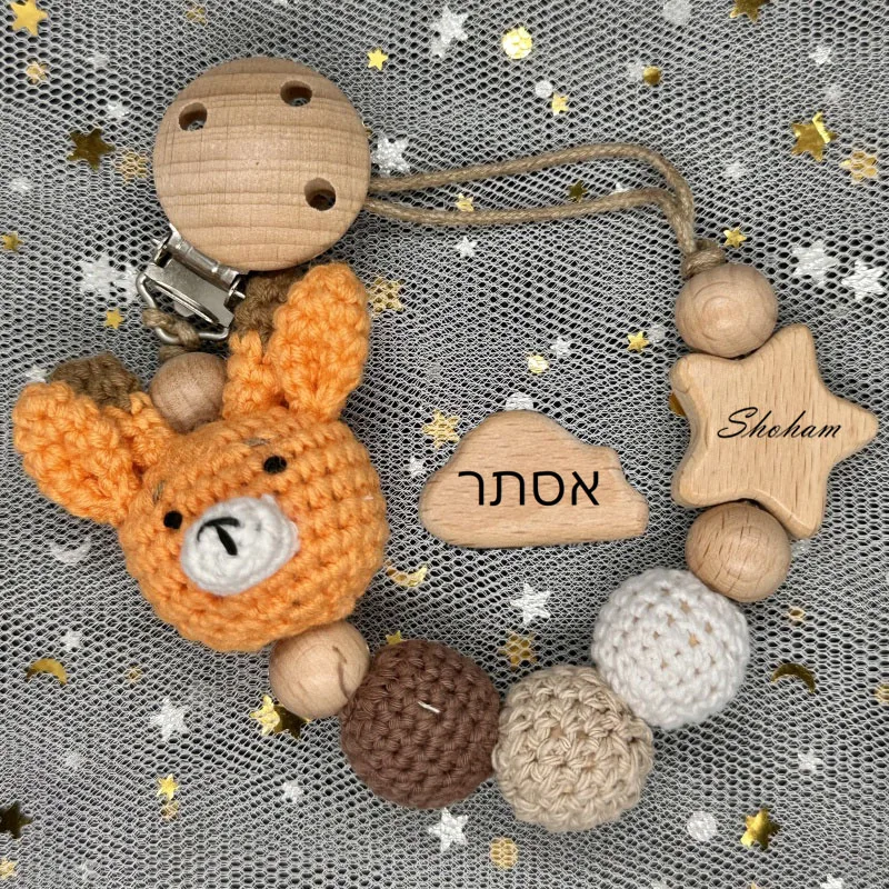 Anneau de dentition en coton Crochet fait à la main, lapin oiseau nuage étoile é...