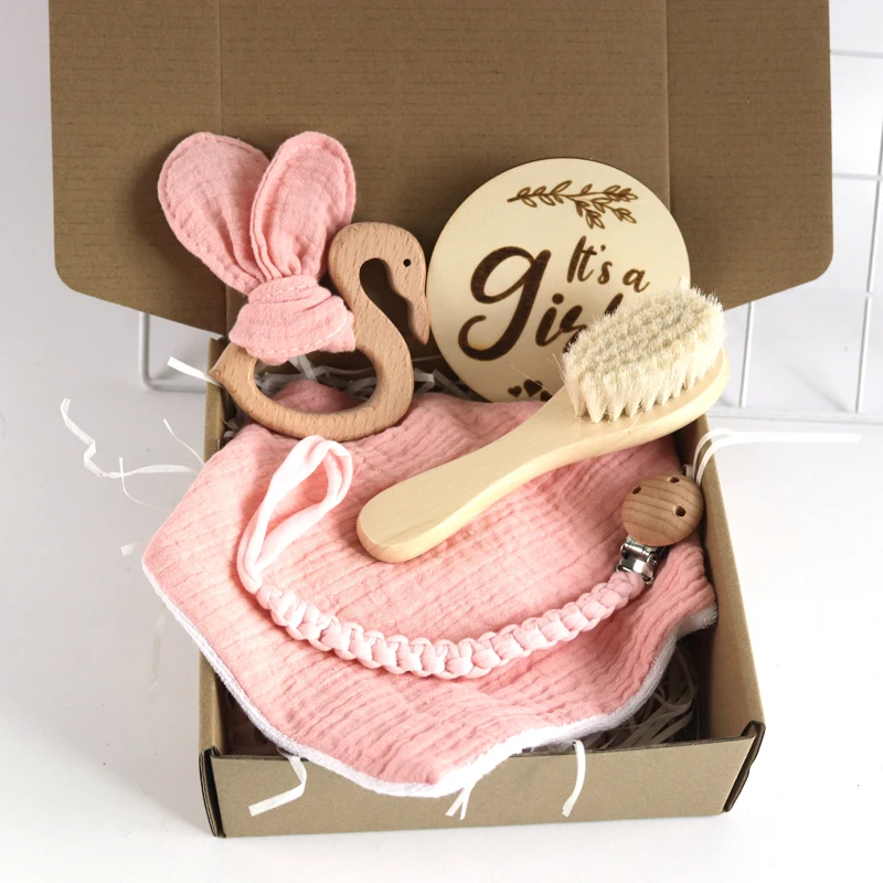 Bavoirs pour bébé, coffret cadeau avec flamant rose, chaîne de sucette, hochet, ...