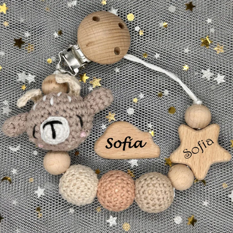 5 Clips de sucette en bois pièces/ensemble naturel pour bébé, trou de 4mm en bo...