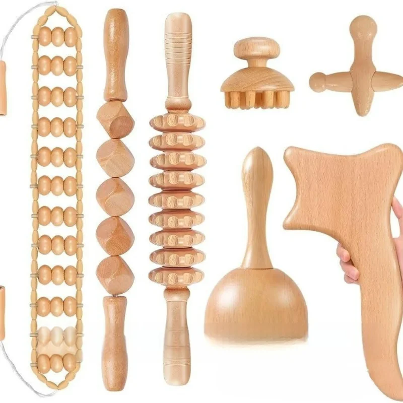 Outils de Massage thérapeutique en bois, masseur de Drainage lymphatique en bois, Kit Maderot...