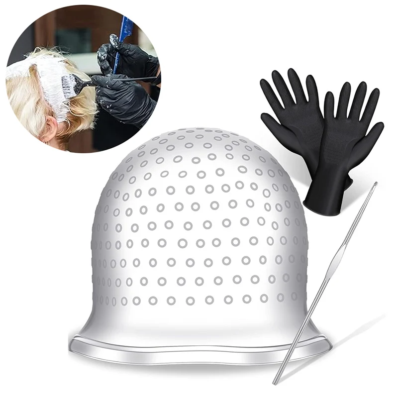 Capuchon de mise en évidence de coloration de cheveux en Silicone réutilisable avec cr...