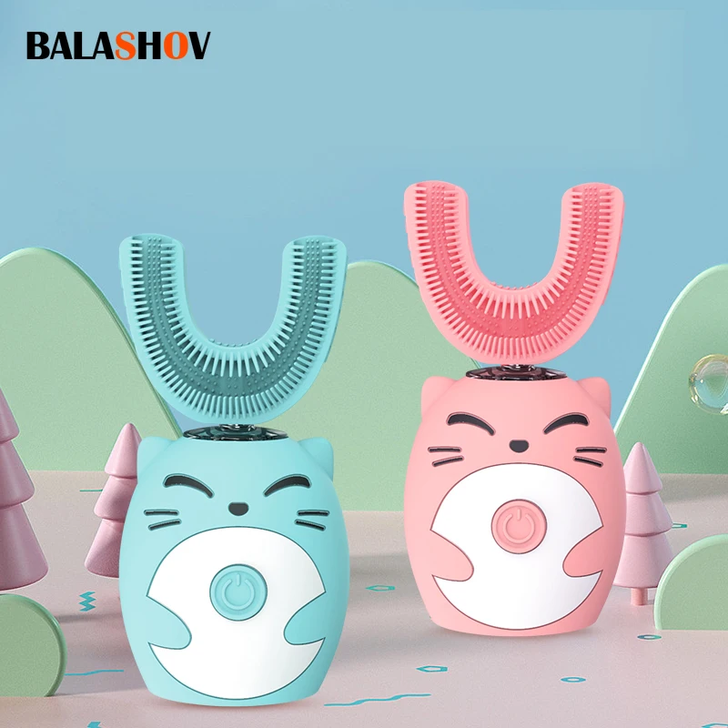 Brosse à dents électrique sonique pour enfants, en Silicone, en forme de U, pour le bl...