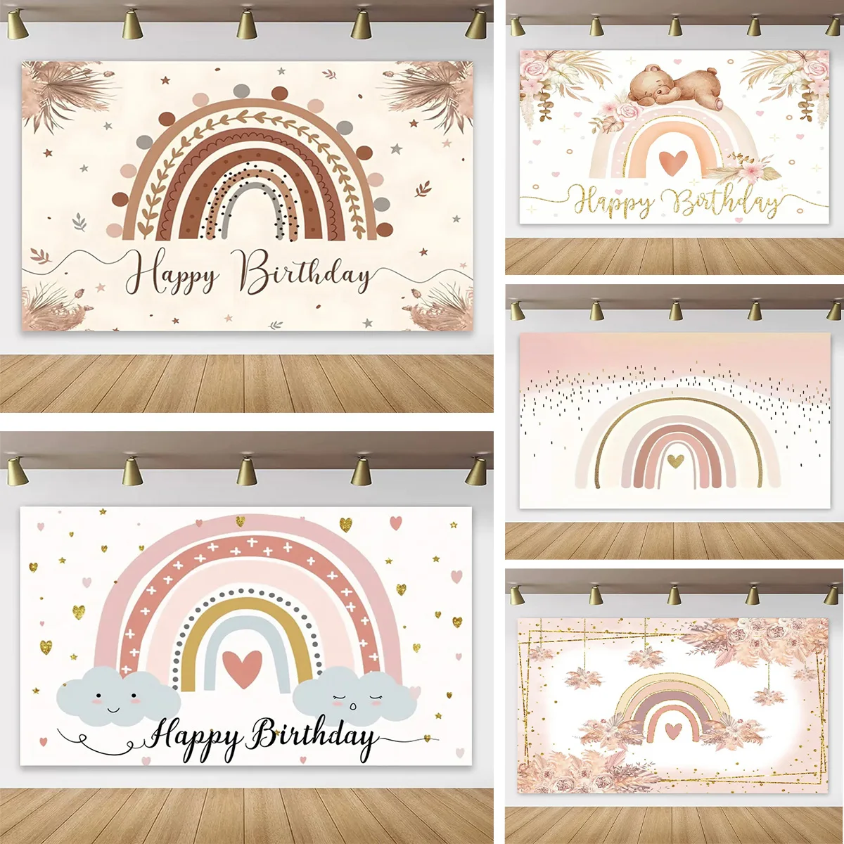 Bohème Pampas herbe soleil arc-en-ciel toile de fond enfants garçon fille premier anni...