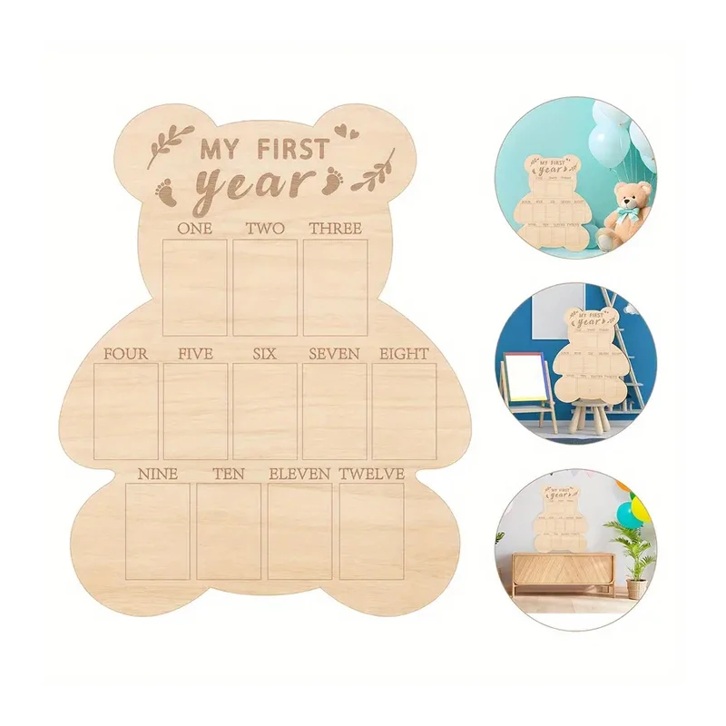 Cadre Photo ours en bois pour le premier an, panneau d'affiche en bois, décor de Table comm&e...