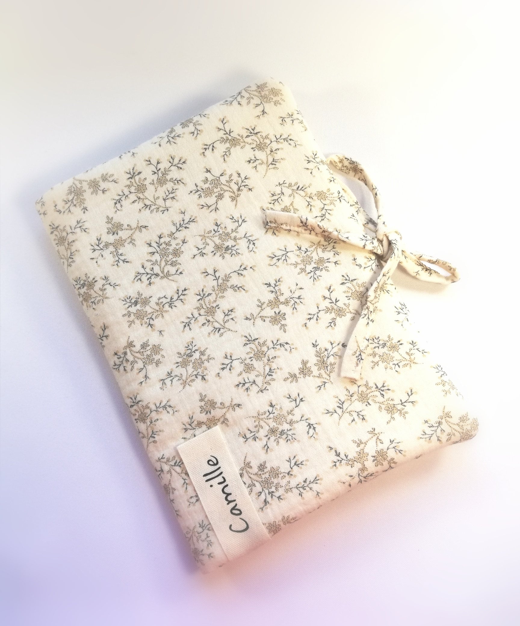 Protège carnet de santé personnalisé personnalisable tissu beige double gaze ou...