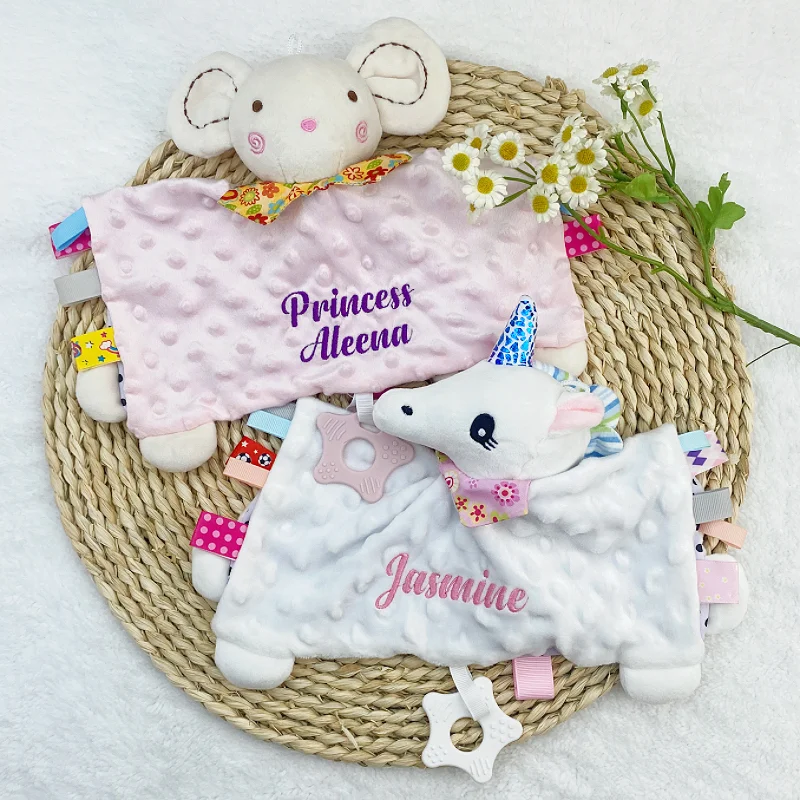 Doudou personnalisé pour bébé avec nom brodé, couverture de sécur...