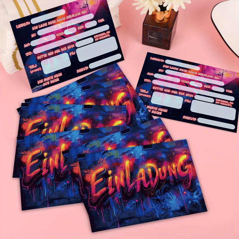 12 pièces cartes d'invitation Graffiti néon thè...