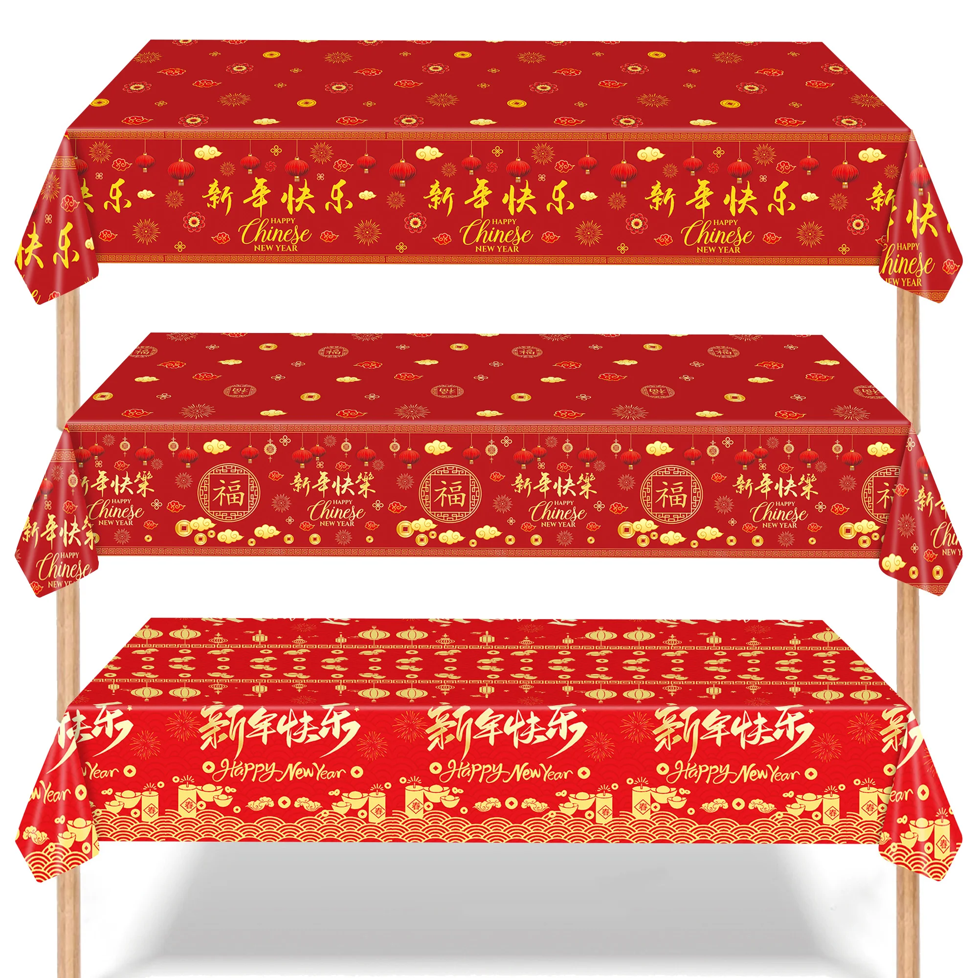 Couverture de Table lanterne rouge du nouvel an chinois 2025, nappe jetable du nouvel an lunaire pou...