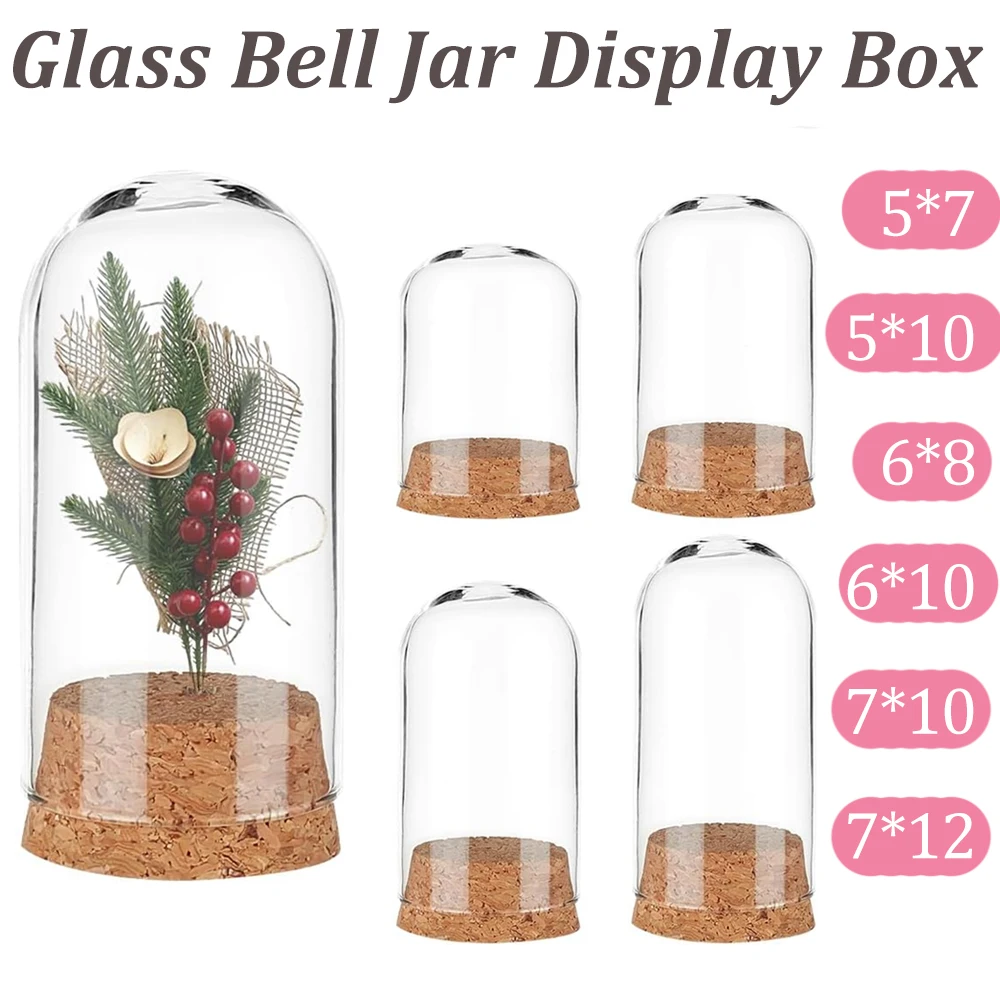 Pot cloche en verre avec Base en liège, 12 pièces, vitrine de 5 tailles pour fleurs, M...